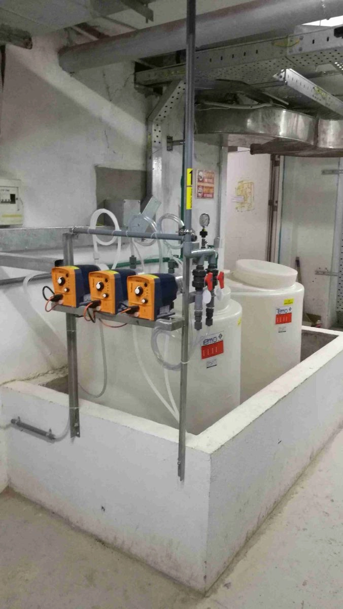- Bước 4: Khử Trùng & Xả Thải: Nước sau lắng đã trong được dẫn qua bể khử trùng. Tại đây, một bơm định lượng khác chính xác bổ sung dung dịch NaOCl 10% (Javen) để tiêu diệt hoàn toàn vi khuẩn, vi rút gây bệnh, đảm bảo tiêu chuẩn vệ sinh. Nước sau xử lý đạt chuẩn được lưu trữ tại bể chứa trước khi xả an toàn vào hệ thống thu gom chung của tòa nhà và thành phố.