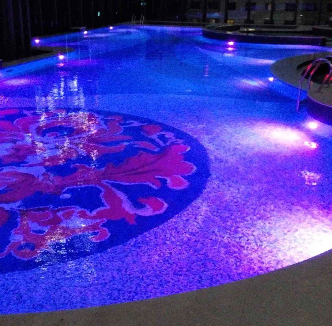 Dù hồ ngoài trời, nhưng với phương pháp tràn mặt đảm bảo hồ trong sạch. không bụi, lá cây...và an toàn, tạo ra cảnh tháp nước rất đẹp vào ban đêm khi hệ thống đèn đổi màu được bật lên.